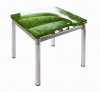 Столешница толщиной 10мм с рисунком цвета бирюза имеет раздвижной механизм. В разложенном виде столешница становится размером 1310*800. Стойки стола хромированные. |