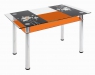 Обеденный стол 3.7 имеет стеклянную столешницу 1200*700*10мм с рисунком. Полка прямоугольной формы красного цвета. Крепление столешниц по УФ-технологии. Стойки - хромированная труба диаметром 60 мм., стойки регулируются по высоте.Возможные цвета полок:оранжевая, венге-ваниль и белая. |